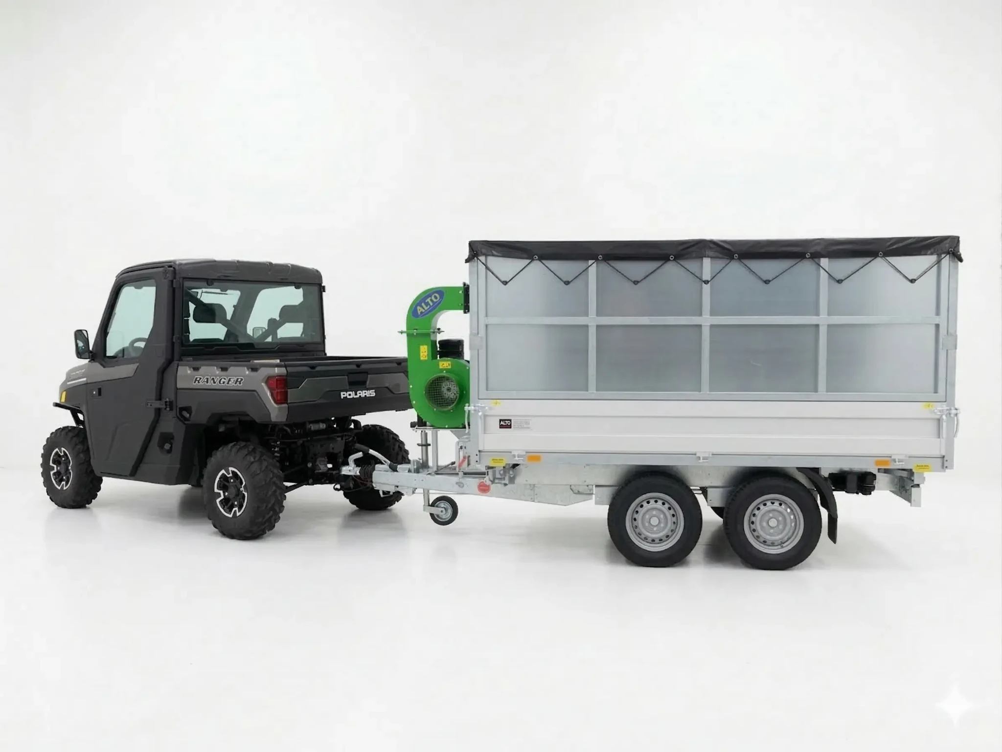Unser Laubsauger lässt sich einfach auf der Deichsel von Anhängern installieren. Hierfür wurde eigens eine Platte entwickelt. Mittels Trägern werden der Laubsauger auf der Anhängerdeichsel und das Handstück mit Schlauch an den Anschlüssen befestigt. Darüber ist bei Bedarf ein längerer Saugschlauch und Träger erhältlich.